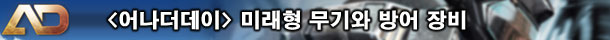 <¾î³ª´õµ¥ÀÌ>ÀÇ ¾ÆÀÌÅÛÀº ij¸¯ÅÍÀÇ °ø°Ý ¼ö´ÜÀÎ ¹«±â ¾ÆÀÌÅÛ°ú ¹æ¾î ¾ÆÀÌÅÛÀ¸·Î ±¸ºÐµÈ´Ù. ¹Ð¸®Å͸®Çü ź ¹«±â¿Í SFÇü ·¹ÀÌÀú ¹× ij³í ¹«±â°¡ ÀÖÀ¸¸ç, ´Ù¾çÇÑ ±â´ÉÀÇ ¹æ¾î ¾ÆÀÌÅÛ°ú ÇÔ²² »ç¿ëµÈ´Ù.
