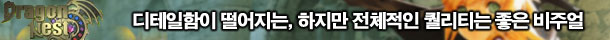 ÇÏÁö¸¸, ij¸¯ÅÍ ¾ó±¼ÀÇ »ý±è»õ³ª Ŭ·ÎÁŸ¶ó´Â °ÍÀ» °¨¾ÈÇØ ¾à°£ÀÇ µðÅ×ÀÏÇÑ ºÎºÐÀÌ ¹Ì¼÷ÇÏ´Ù´Â Á¡À» »ý°¢ÇØ º»´Ù¸é ÀüüÀûÀ¸·Î µå·¡°ï³×½ºÆ®ÀÇ ±×·¡ÇÈ Ä÷¸®Æ¼´Â ±×¸® ³ª»ÚÁö ¾Ê´Ù. ¹è°æ ±×·¡ÇÈÀÇ Ä÷¸®Æ¼³ª ij¸¯ÅÍ ÀÚüÀÇ ¿òÁ÷ÀÓ µîÀÇ ±×·¡ÇÈ È¿°ú ÀÚü´Â ÁÁ´Ù. ¡®µðÅ×ÀÏÇÔÀÌ ¶³¾îÁø´Ù¡¯¿Í ¡®ºñÁÖ¾ó Ä÷¸®Æ¼°¡ ¶³¾îÁø´Ù¡¯¸¦ È¥µ¿Çؼ´Â °ï¶õÇÒ °ÍÀÌ´Ù.