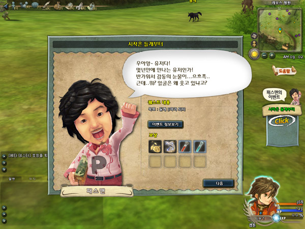 ÀϹÝÀûÀÎ MMORPGÀÇ °æ¿ì NPC¿¡°Ô¼ Äù½ºÆ®¸¦ ¹Þ´Â °ÍÀÌ Á¤ÇüȵǾî ÀÖ´Ù. ÇÏÁö¸¸ <¾î½ºÅä´Ï½Ã¾Æ ¿Â¶óÀÎ>ÀÇ °æ¿ì´Â ÁÖ·Î ¡®ÆÐ½º¸Ç¡¯ÀÌ °ÔÀÓ ³» ÁøÇà ¹æ½ÄÀÇ ¼³¸í°ú ÇÔ²² À¯Àúµé¿¡°Ô Äù½ºÆ®¸¦ ºÎ¿©ÇÏ´Â ¿ªÇÒÀ» ¸Ã°í ÀÖ´Ù. 1Â÷ CBT¿¡¼´Â NPC°¡ Äù½ºÆ®¸¦ ÁøÇàÇϴµ¥ ÇÊ¿äÇÑ Á¸Àç¿´Áö¸¸ º°µµ·Î Äù½ºÆ®¸¦ ºÎ¿©ÇÏ´Â Çü½ÄÀº °¡Áö°í ÀÖÁö ¾Ê¾Ò´Ù. ¹°·Ð 1Â÷ CBTÀ̱⠶§¹®¿¡ À¯ÀúµéÀÇ ÆíÀǼºÀ» ³ôÀ̱â À§ÇØ ¡®ÆÐ½º¸Ç'À» »ç¿ëÇßÀ» °¡´É¼ºÀÌ ³ôÀ¸¸ç ÇâÈÄ ¼öÁ¤µÉ °¡´É¼ºÀÌ ³ô´Ù.