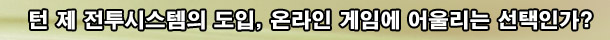 ƯÈ÷ óÀ½À¸·Î °ø°³µÈ ÀüÅõ½Ã½ºÅÛ°ú °ü·ÃÇØ¼´Â À¯ÀúµéÀÇ È£ºÒÈ£°¡ ³ª´µ¸é¼ ¼³¿Õ¼³·¡°¡ À̾îÁö°í ÀÖ´Ù. °ú¿¬ ÀÌ ½Ã½ºÅÛÀÌ ¿Â¶óÀÎ °ÔÀÓÀÇ ÀûÇÕÇÑ °ÍÀÎÁö Æò°¡Çϱ⿡´Â Á» ´õ ½ÃÀÏÀÌ °É¸± Å×Áö¸¸ ¹«³È÷ ¾ÈÂøÇÒ ¼ö ÀÖ´Ù¸é »õ·Î¿î °ÔÀÓ ½ºÅ¸ÀÏÀ» Á¤Âø½Ãų ¼ö ÀÖÀ» ¼ö ÀÖÀ» °ÍÀ¸·Î Àü¸ÁµÈ´Ù.