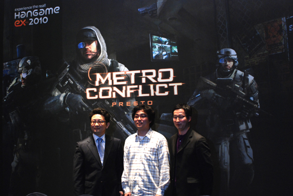 NHN(´ëÇ¥ ±è»óÇå)ÀÇ °ÔÀÓ Æ÷ÅÐ ÇѰÔÀÓÀÌ ÁøÇà ÁßÀÎ ````ÇѰÔÀÓ Àͽº 2010````(Hangame EX 2010)ÀÌ ¼ºÈ²¸®¿¡ ÁøÇà ÁßÀÎ °¡¿îµ¥ ½ÅÀÛ ¡®¸ÞÆ®·Î ÄÁÇø¯Æ®¡¯¿Í °ü·ÃÇØ °³¹ßÀ» ÃѰýÇϰí ÀÖ´Â ·¹µå´ö ¿À»óÅôëÇ¥°¡ Âü¼®ÇÑ °¡¿îµ¥ ÁúÀÇÀÀ´ä ¼¼¼ÇÀÌ ÁøÇàµÆ´Ù.