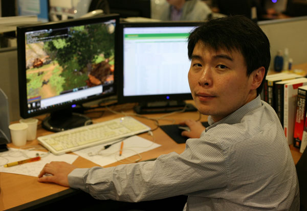 Q. ·¹ÀÌ´õÁîÀÇ °³¹ß ±â°£ ¹× °³¹ß ÀηÂÀº ¾î¶»°Ô µÇ³ª. 2006³âºÎÅÍ ½ÃÀÛÇßÀ¸´Ï±î ÀÌÁ¦ 4³âÀÌ Èǽ ³Ñ¾ú±º¿ä. ¾Æ¸¶ ¿ÀÇÂÀÌ µÇ´Â ½ÃÁ¡¿¡¼± ¾à 5³â ¹Ý Á¤µµ°¡ µÇÁö ¾ÊÀ»±î ÇÕ´Ï´Ù. óÀ½¿¡´Â 10¿©¸íÀÌ ½ÃÀÛÇß½À´Ï´Ù¸¸ ÇöÀç´Â 46¸íÀÇ ÀοøÀÌ °³¹ß¿¡ Âü¿©Çϰí ÀÖ½À´Ï´Ù. MMORPG·Î´Â ÀûÀº ÀοøÀÌÁö¸¸ 5~6°³ÀÇ ¿ÜºÎ ȸ»çµé°ú Çù·ÂÇÏ¿© °³¹ßÇϰí ÀÖÀ¸´Ï ÇÁ·ÎÁ§Æ®¿¡ Âü¿©Çϰí ÀÖ´Â Àüü ÀοøÀº °áÄÚ ÀÛÁö ¾ÊÀº °Í °°½À´Ï´Ù. ³»ºÎ ½ºÆ©µð¿À¿¡´Â ÄܼÁÆ® ¹× ±âȹ ÀÛ¾÷¸¸ 10¸í ³Ñ°Ô ±¸¼ºµÇ¾î ÀÖ°í ÇÁ·Î±×·¡¸Ó ¿ª½Ã Å« ºñÁßÀ» Â÷ÁöÇÕ´Ï´Ù.