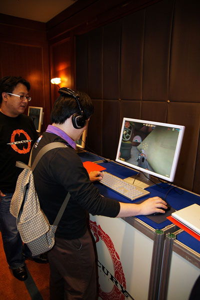 À̳¯ ±âÀÚ°£´ãȸ¿¡´Â ¼Õ¿À°ø ÃÖ½Å±Ô È¸ÀåÀ» ºñ·ÔÇØ ¡®ÇÁ·ÎÁ§Æ® ¸ÓÅ¥¸®¡¯ÀÇ °³¹ßÀ» ´ã´çÇϰí ÀÖ´Â ½ºÆ©µð¿À Ç÷çÅä°ÔÀÓÁî °ü°èÀÚµéÀÌ Âü¼®ÇÑ °¡¿îµ¥ ÁøÇàµÆ´Ù.
