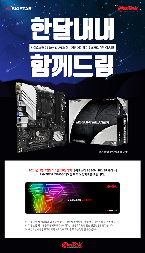 [ÀÌ¿¥ÅØ] ¹ÙÀÌ¿À½ºÅ¸ B550M-SILVER ±¸¸Å ½Ã °ÔÀÌ¹Ö ÀåÆÐµå ÇÔ²² µå¸² À̺¥Æ® ÁøÇà |