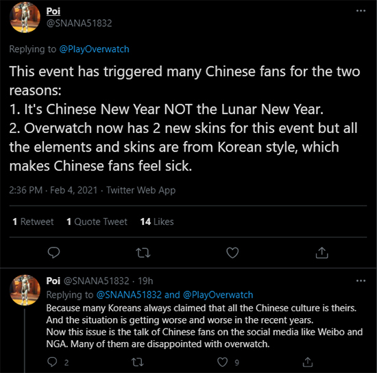 ±×·±µ¥ ÀϺΠÁß±¹ À¯Àú°¡ ¡®¿À¹ö¿öÄ¡¡¯ °ø½Ä SNS¿¡¼ ¡®³µ¿¡¯À» ºÎ¸®°í ÀÖ´Ù. À̵éÀº ¼³³¯À» À½·Â ¼³(Lunar New Year)°¡ ¾Æ´Ï¶ó ¡®Áß±¹ ¼³(Chinese New Year)¡¯¶ó ¾ð±ÞÇÏ¸é¼ ¡°Çѱ¹ÀûÀÎ ¿ä¼Ò°¡ ´ã±ä ½ºÅ²ÀÌ Áß±¹ À¯Àú¸¦ ºÐ³ëÄÉ Çϰí ÀÖ´Ù¡±¶ó°í ÁÖÀåÇß´Ù.