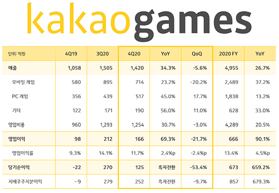 īī¿À°ÔÀÓÁî°¡ 8ÀÏ(¿ù), 2020³â 4ºÐ±â ¹× ¿¬°£ ½ÇÀûÀ» ¹ßÇ¥Çß´Ù.
