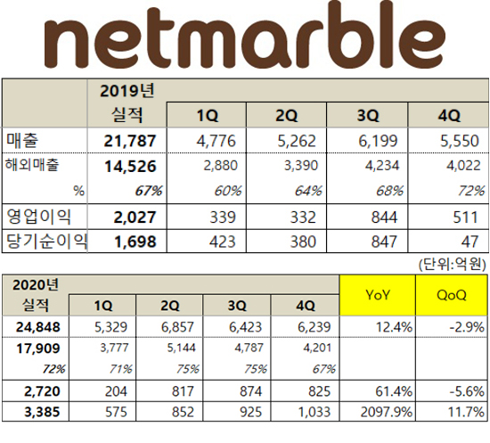 [³Ý¸¶ºí] 4ºÐ±â ¸ÅÃâ 6239¾ï¿ø, 20³â ¸ÅÃâ 2Á¶4848¾ï ¿ø ±â·Ï |