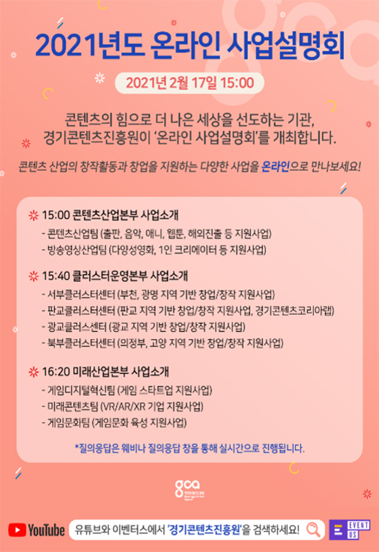 °æ±âÄÜÅÙÃ÷ÁøÈï¿ø(°æÄÜÁø)Àº ¿À´Â 2¿ù 17ÀÏ ¿ÃÇØ °æ±âµµ ÄÜÅÙÃ÷ Áö¿ø »ç¾÷À» ¾Ë¸®´Â ¡¸2021³âµµ °æ±âÄÜÅÙÃ÷ÁøÈï¿ø »ç¾÷¼³¸íȸ¡¹¸¦ ¿Â¶óÀÎÀ¸·Î °³ÃÖÇÑ´Ù°í ¹àÇû´Ù.