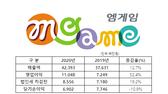 ¿¥°ÔÀÓÀº 2020³â ¿¬°á ±âÁØ ¸ÅÃâ 424¾ï¿ø, ¿µ¾÷ÀÌÀÍ 110¾ï¿ø, ´ç±â¼øÀÌÀÍ 69¾ï¿øÀ» ´Þ¼ºÇß´Ù°í 18ÀÏ °ø½ÃÇß´Ù.