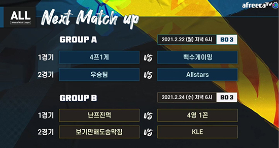°³¸·ÀüÀº ¿À´Â 22ÀÏ(¿ù) ¿ÀÈÄ 6½ÃºÎÅÍ ÁøÇàµÈ´Ù. AÁ¶ 1°æ±â¿¡¼´Â '½º¸Ê, Áعåµå, Äí·Î, ¿À²ó, ±¸°Å'·Î ±¸¼ºµÈ '4ÇÁ1°Ô(4ÀüÇÁ·Î°ÔÀ̸Ó, 1°ÔÀ̸Ó)'ÆÀ°ú ¾Æ¸¶Ãß¾î ÆÀ 'AWESOME'¿¡¼ ÇÕÀ» ¸ÂÃç¿Â '¹é¼ö°ÔÀ̹Ö'ÀÌ ¸ÂºÙ´Â´Ù. ¾Õ¼ ÁøÇàµÈ Á¶Áö¸í½Ä¿¡¼ 4ÇÁ1°ÔÆÀÀÌ ¾Æ¸¶Ãß¾î·Î ±¸¼ºµÈ ¹é¼ö°ÔÀ̹ÖÀ» »ó´ë·Î Àü ÇÁ·Î°ÔÀ̸ÓÀÇ ¹«¼¿òÀ» º¸¿©ÁÖ°Ú´Ù´Â °¢¿À¸¦ ¹àÈù ¹Ù ÀÖ¾î ¹é¼ö°ÔÀ̹ÖÀÌ 4ÇÁ1°Ô¸¦ »ó´ë·Î ¾î¶°ÇÑ Àü·«À» ÁغñÇØ¿ÃÁö ¸¹Àº °ü½ÉÀÌ ¸ðÀ̰í ÀÖ´Ù.