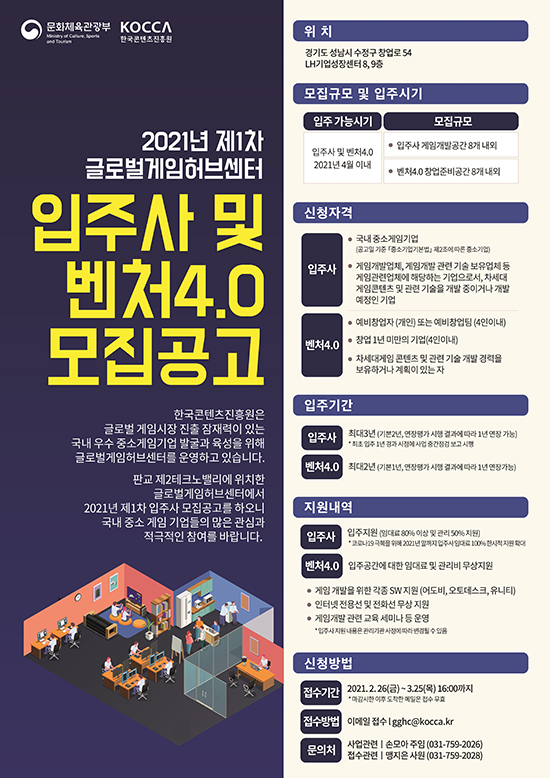 [KOCCA] ÄÜÁø¿ø, ±Û·Î¹ú°ÔÀÓÇãºê¼¾ÅÍ ÀÔÁÖ»ç ¹× °ÔÀÓº¥Ã³4.0 ¸ðÁý |