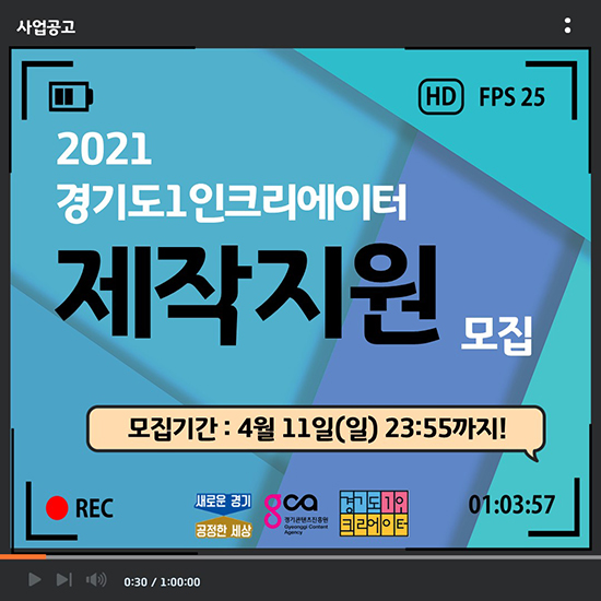 °æ±âµµ¿Í °æ±âÄÜÅÙÃ÷ÁøÈï¿øÀº ¿À´Â 4¿ù 11ÀϱîÁö °æ±âµµ 1ÀÎ Å©¸®¿¡ÀÌÅÍ »ç¾÷ȸ¦ Áö¿øÇϱâ À§ÇÑ ¡¸2021 °æ±âµµ 1ÀÎ Å©¸®¿¡ÀÌÅÍ Á¦ÀÛ Áö¿ø(ÀÌÇÏ Å©¸®¿¡ÀÌÅÍ Á¦ÀÛÁö¿ø)¡¹ Âü°¡ÀÚ¸¦ ¸ðÁýÇÑ´Ù.