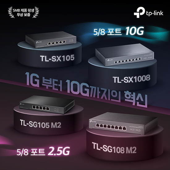 Ȩ ¿£ÅÍÅ×ÀÎ¸ÕÆ® ¹× ¼Ò±Ô¸ð/Ȩ ¿ÀÇǽº ȯ°æÀ» À§ÇÑ ½ÅÁ¦Ç°Àº 2.5Gbps¸¦ Áö¿øÇÏ´Â 5Æ÷Æ® ¸ðµ¨ TL-SG105-M2¿Í 8Æ÷Æ® ¸ðµ¨ TL-SG108-M2¸¦ ºñ·ÔÇÏ¿©, 10Gbps¸¦ Áö¿øÇÏ´Â 5Æ÷Æ® ¸ðµ¨ TL-SX105¿Í 8Æ÷Æ® ¸ðµ¨ TL-SX1008 µî ÃÑ 4°¡Áö ¶óÀξ÷À¸·Î ±¸¼ºµÆ´Ù.