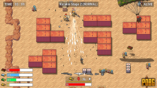 ¹èƲ±×¶ó¿îµå¸¦ ¾ÆÄÉÀ̵å Çü½ÄÀÇ °ÔÀÓÀ¸·Î Àçź»ý½ÃŲ POBG´Â ž´Ù¿î ½Ì±Û Ç÷¹ÀÌ¾î ½´ÆÃ °ÔÀÓÀ¸·Î, ¡®Ä¡Å²(´ß)¡¯ ¹«¸®¿ÍÀÇ ½Î¿òÀÌ Áß½ÉÀÌ µÈ´Ù. ½ºÅ×ÀÌÁö°¡ ÁøÇàµÊ¿¡ µû¶ó ij¸¯Å͸¦ ¼ºÀå½ÃŰ¸é¼ Á¡Á¡ ´õ °ÇÑ Ä¡Å²µéÀ» ¹°¸®ÃÄ¾ß Çϰí, ·Î±×¶óÀÌÅ©(Roguelike) ÇüÅÂÀÇ °ÔÀÓÀ̱⠶§¹®¿¡ ij¸¯ÅͰ¡ »ç¸ÁÇϸé óÀ½ºÎÅÍ ÀçµµÀüÇØ¾ß ÇÑ´Ù. °ÔÀÓ ½ÃÀÛ Àü ³À̵µ¸¦ ¼±ÅÃÇÒ ¼ö ÀÖ°í, ½ºÅ×ÀÌÁö´Â Ä«¶óŲ-ºñÄ˵ð-»ç³ì-¹Ì¶ó¸¶-¿¡¶õ°Ö ¸Ê ¼øÀ¸·Î ÁøÇàµÈ´Ù.