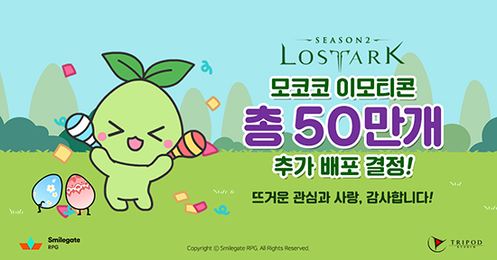 ½º¸¶ÀϰÔÀÌÆ® RPÀÇ ºí·Ï¹ö½ºÅÍ Çپؽ½·¡½Ã MMORPG ·Î½ºÆ®¾ÆÅ©°¡ ´ëÇ¥ ¸¶½ºÄÚÆ® ¡®¸ðÄÚÄÚ¡¯¸¦ ÁÖÀΰøÀ¸·Î Á¦ÀÛÇÑ Ä«Ä«¿ÀÅå À̸ðƼÄÜ ¡®¸ðÄÚÄÚ¸¸Å ¹Ý°¡¿ö! ¸ðÄÚÄÚÄÜ¡¯ÀÇ ¹«·á ¹èÆ÷¸¦ ½ÃÀÛÇÑÁö 1½Ã°£ ¸¸¿¡ ÁغñµÈ ¼ö·® 30¸¸°³°¡ ¸ðµÎ ¼ÒÁøµÆ´Ù. ½º¸¶ÀϰÔÀÌÆ® RPG´Â À̺¥Æ® ½ÃÀÛ ´çÀÏÀÎ 3¿ù 31ÀÏ(¼ö) ¿ÀÈÄ, ¸ðÄÚÄÚ À̸ðƼÄÜ 20¸¸°³ Ãß°¡ ¹èÆ÷¸¦ ±ä±Þ °áÁ¤Çϰí ÃÑ 50¸¸°³ÀÇ À̸ðƼÄÜÀ» ¹èÆ÷Çß´Ù°í 1ÀÏ(¸ñ) ¹àÇû´Ù.