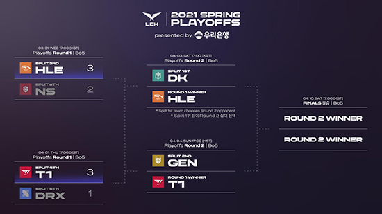 ÇÑÈ»ý¸íe½ºÆ÷Ã÷¿Í T1Àº 3¿ù 31Àϰú 4¿ù 1ÀÏ¿¡ ÆîÃÄÁø, 2021 LCK ½ºÇÁ¸µ Ç÷¹ÀÌ¿ÀÇÁ 1¶ó¿îµå¿¡¼ ³ó½É ·¹µåÆ÷½º¿Í DRX¸¦ °¢°¢ 3´ë2¿Í 3´ë1·Î °ÝÆÄÇϰí, 2¶ó¿îµå ÁøÃâ±ÇÀ» °Å¸ÓÁã¾ú´Ù.