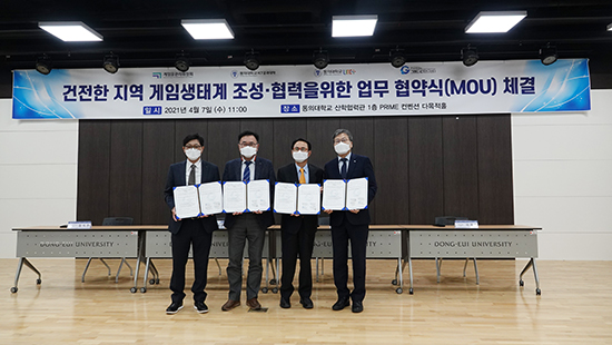 °ÔÀÓ¹°°ü¸®À§¿øÈ¸(°ÔÀÓÀ§)´Â 7ÀÏ(¼ö) ¿ÀÀü11½Ã µ¿ÀÇ´ëÇб³ PRIME´Ù¸ñÀûȦ¿¡¼ µ¿ÀÇ´ëÇб³ ICT°ø°ú´ëÇÐ, LINC+»ç¾÷´Ü, ÀΰøÁö´É±×·£µåICT¿¬±¸¼¾ÅÍ¿Í °ÇÀüÇÑ Áö¿ª °ÔÀÓ»ýŰè Á¶¼º°ú Çù·ÂÀ» À§ÇÑ MOU¸¦ ü°áÇß´Ù.