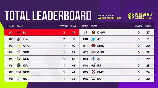 ¸¶Áö¸· ³¯ ÃÊ¹Ý ¿¬¼ÓÀ¸·Î ġŲÀ» ȹµæÇÑ ÀϺ»ÀÇ Enter Force.36(¿£ÅÍÆ÷½º.36)ÀÌ 2À§¸¦ Â÷ÁöÇß°í, Çѱ¹ÀÇ ATA Lavega(ATA ¶óº£°¡)´Â 1ġŲÀÌÁö¸¸ Âü°¡ ÆÀ °¡¿îµ¥ Ãִ٠ųÀ» ±â·ÏÇØ 3À§¿¡ ¿Ã¶ú´Ù. ±× ¿Ü¿¡ GRIFFIN(±×¸®ÇÉ), Gen.G(Á¨Áö), DWG KIA(´ã¿ø ±â¾Æ), Global Esports Xsset, NO COMMENT(³ëÄÚ¸àÆ®)°¡ ġŲÀ» Çϳª¾¿ Â÷ÁöÇÏ¸ç »ó±ÝÀ» ¹é¸¸ ¿ø¾¿ ȹµæÇß´Ù.