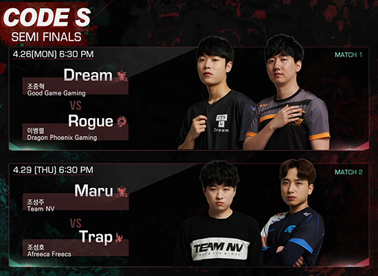¾ÆÇÁ¸®Ä«TV´Â 4¿ù 26ÀÏ(¿ù)°ú 29ÀÏ(¸ñ) ¾çÀϰ£ ¼¿ï ´ëÄ¡µ¿ ¡®¾ÆÇÁ¸®Ä« ÇÁ¸¯¾÷ ½ºÆ©µð¿À¡¯¿¡¼ '2021 GSL(Global StarCraft II League) ½ÃÁð1¡¯ ÄÚµåS 4°Àü °æ±â¸¦ ÁøÇàÇÑ´Ù°í ¹àÇû´Ù. 4°Àü¿¡´Â Á¶ÁßÇõ(T), À̺´·Ä(Z), Á¶¼ºÁÖ(T), Á¶¼ºÈ£(P)°¡ ÁøÃâÇß´Ù.