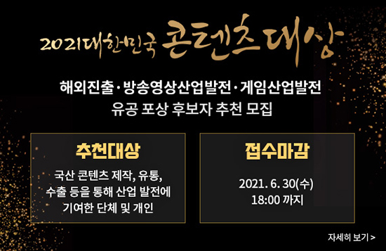 [KOCCA] 2021³â ´ëÇѹα¹ ÄÜÅÙÃ÷ ´ë»ó Èĺ¸ÀÚ Ãßõ Á¢¼ö |