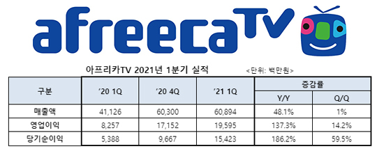 [¾ÆÇÁ¸®Ä«TV] 2021³â 1ºÐ±â ¸ÅÃâ 609¾ï, ¿µ¾÷ÀÌÀÍ 196¾ï ¿ø |