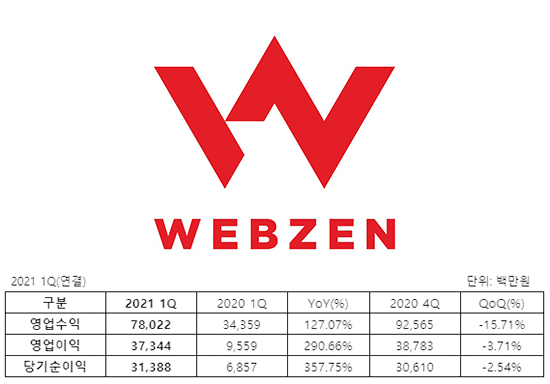 ¿À´Ã(5¿ù 7ÀÏ) °ø½ÃµÈ À¥Á¨ÀÇ 2021³â 1ºÐ±â ½ÇÀûÀº ¿µ¾÷¼öÀÍÀÌ 780¾ï¿øÀ¸·Î Àü³â °°Àº ±â°£(2020³â 1ºÐ±â) ´ëºñ 127.07% Áõ°¡ÇßÀ¸¸ç, ¿µ¾÷ÀÌÀÍÀº 373¾ï¿ø, ´ç±â¼øÀÌÀÍÀº 313¾ï¿øÀ¸·Î °¢°¢ 290.66%, 357.75% ¿Ã¶ú´Ù.