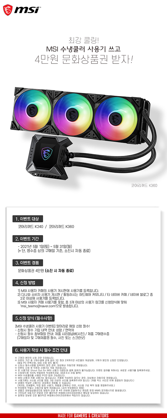 [MSI] 5¿ù ¼ö³ÃÄð·¯ À̺¥Æ® ÁøÇà |