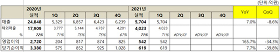 [³Ý¸¶ºí] 2021³â 1ºÐ±â ¸ÅÃâ 5,704¾ï¿ø, ¿µ¾÷ÀÌÀÍ 542¾ï¿ø ±â·Ï |