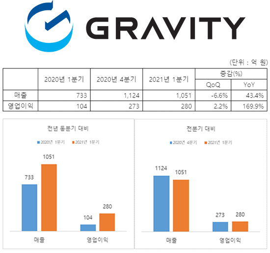 [±×¶óºñƼ] 2021³â 1ºÐ±â ¸ÅÃâ 1,051¾ï ¿ø, ¿µ¾÷ÀÌÀÍ 280¾ï ¿ø |