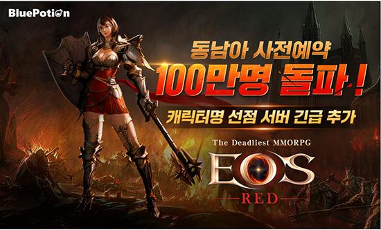 ºí·çÆ÷¼Ç°ÔÀÓÁî Á÷Á¢ °³¹ßÇÏ°í ¼ºñ½ºÇÏ´Â ¸ð¹ÙÀÏ Á¤Åë MMORPG <¿¡¿À½º ·¹µå>ÀÇ µ¿³²¾Æ½Ã¾Æ Áö¿ª »çÀü¿¹¾àÀÚ°¡ Áö³ 17ÀÏ 100¸¸ ¸íÀ» µ¹ÆÄÇÏ¿´´Ù°í ¹àÇû´Ù.