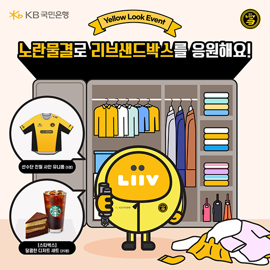 KB±¹¹ÎÀºÇàÀº ¡®2021 ¸®±× ¿Àºê ·¹Àüµå èÇǾ𽺠ÄÚ¸®¾Æ(ÀÌÇÏ LCK) ¼¸Ó ½ºÇø´¡¯ °³¸·¿¡ ¸ÂÃç ¸®ºê »÷µå¹Ú½º¸¦ ÀÀ¿øÇÏ´Â ¿»·Î¿ì ·è À̺¥Æ®(Yellow Look Event)¸¦ ´ÙÀ½´Þ 9ÀϱîÁö ½Ç½ÃÇÑ´Ù°í ¹àÇû´Ù.