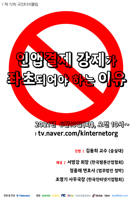 ¿À´Â 6¿ù 15ÀÏ(È­) ¿ÀÀü 10½Ã¿¡ ±¸±ÛÀÇ Àξ۰áÁ¦ °­Á¦ Á¤Ã¥°ú °ü·ÃÇÑ Àü¹®°¡ °£´ãȸ°¡ Çѱ¹ÀÎÅͳݱâ¾÷Çùȸ(ÀÌÇÏ ÀαâÇù)¿¡¼­ ¿Â¶óÀÎÀ¸·Î °³ÃֵȴÙ.
