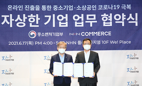 NHNÀÇ Ä¿¸Ó½º »ç¾÷ºÎ¹®Àº 17ÀÏ ÆÇ±³ ¼ÒÀç NHN »ç¿Á ¡®Ç÷¹À̹ÂÁö¾ö¡¯¿¡¼­ Áß¼Òº¥Ã³±â¾÷ºÎ¿Í ¡®¿Â¶óÀÎ ÁøÃâÀ» ÅëÇÑ Áß¼Ò±â¾÷¡¤¼Ò»ó°øÀÎ Äڷγª 19 ±Øº¹À» À§ÇÑ ÀÚ»óÇÑ ±â¾÷¡¯ ¾÷¹« Çù¾àÀ» ü°áÇÑ´Ù.