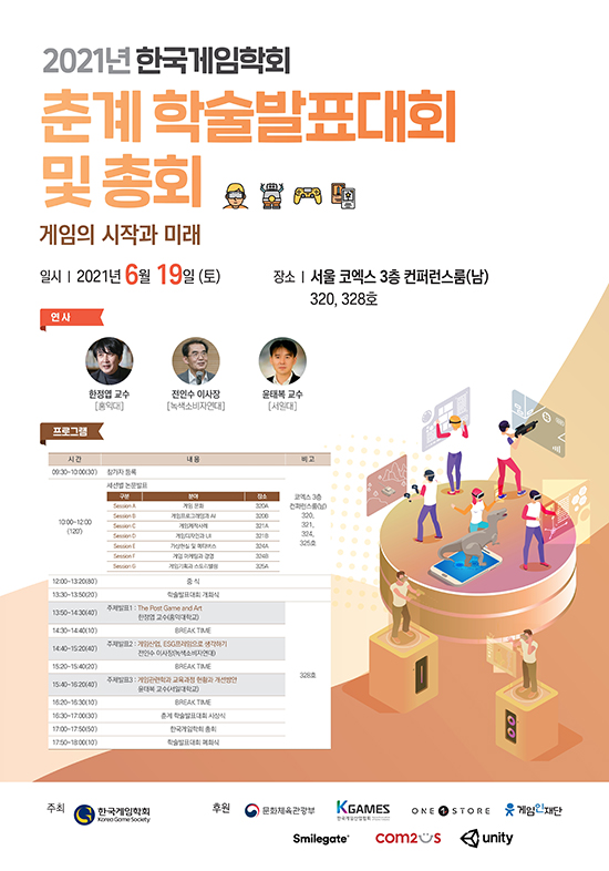 Çѱ¹°ÔÀÓÇÐȸ´Â ¡®°ÔÀÓÀÇ ½ÃÀÛ°ú ¹Ì·¡¡¯¸¦ ÁÖÁ¦·Î 2021³â 6¿ù 19ÀÏ(Åä) ÄÚ¿¢½º ÄÁÆÛ·±½º·ë¿¡¼ Ãá°è Çмú¹ßÇ¥´ëȸ¸¦ °³ÃÖÇÑ´Ù.