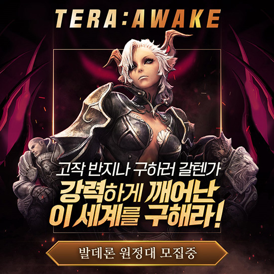 Å©·¡ÇÁÅæÀÇ ºí·çȦ½ºÆ©µð¿À(ÀÌÇÏ ºí·çȦ½ºÆ©µð¿À)°¡ 18ÀÏ ¡®Å×¶ó(The Exiled Realm of Arborea, TERA)¡¯ ¿©¸§ ¾÷µ¥ÀÌÆ® AWAKE¸¦ °ø°³ÇÏ¸ç ¹ßµ¥·Ð ¿øÁ¤´ëÀÇ »çÀü ¸ðÁý À̺¥Æ®¸¦ ¹ßÇ¥Çß´Ù.