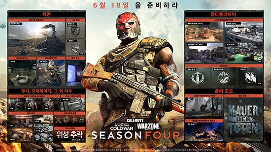 ÄÝ ¿Àºê µàƼ: ºí·¢ ¿É½º ÄÝµå ¿ö(Call of Duty¢ç: Black Ops Cold War, ÀÌÇÏ ºí·¢ ¿É½º ÄÝµå ¿ö) ¹× Çõ½ÅÀûÀÎ ¹«·á ¹èƲ ·Î¾â °æÇè ÄÝ ¿Àºê µàƼ: ¿öÁ¸(Call of Duty: Warzone¢â)¿¡ ³× ¹øÂ° ½ÃÁð(Season 4)ÀÌ ¿À´Ã 6¿ù 18ÀÏ (±Ý) ½ÃÀ۵ƴÙ.