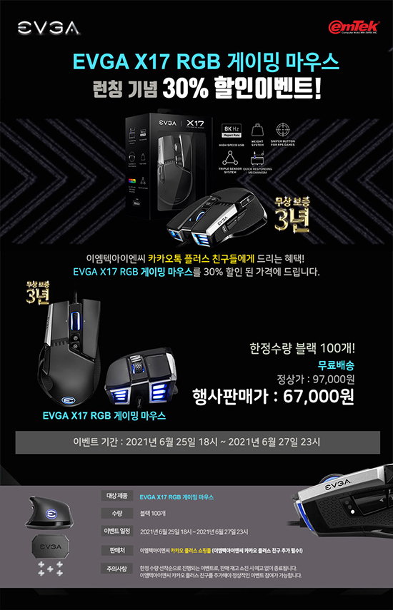ÀÌ¿¥ÅؾÆÀÌ¿£¾¾(ÀÌ¿¥ÅØ)´Â 2021³â 6¿ù 25ÀÏ ºÏ¹Ì No.1 ±×·¡ÇÈÄ«µå EVGAÀÇ ½ÅÁ¦Ç° °ÔÀÌ¹Ö ¸¶¿ì½º EVGA X17°¡ ºí·¢ »ö»óÀÇ Ãâ½Ã¿Í ´õºÒ¾î ÀÌ¿¥ÅؾÆÀÌ¿£¾¾ īī¿À Ç÷¯½º Ä£±¸¸¦ ´ë»óÀ¸·Î ÇÏ´Â 30%¸¦ ÁøÇàÇÑ´Ù.