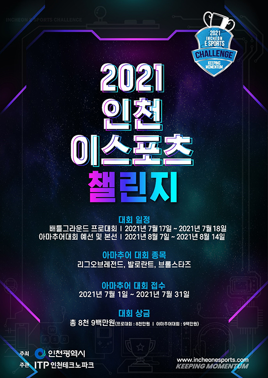 ÀÎõ±¤¿ª½Ã°¡ ÁÖÃÖÇϰí ÀÎõÅ×Å©³ëÆÄÅ©(ÀÎõTP)°¡ ÁÖ°üÇÏ´Â '2021 ÀÎõ e½ºÆ÷Ã÷ 縰Áö(2021 INCHEON ESPORTS CHALLENGE)'ÀÇ °³ÃÖ¸¦ È®Á¤Çß´Ù°í 28ÀÏ ¹àÇû´Ù.