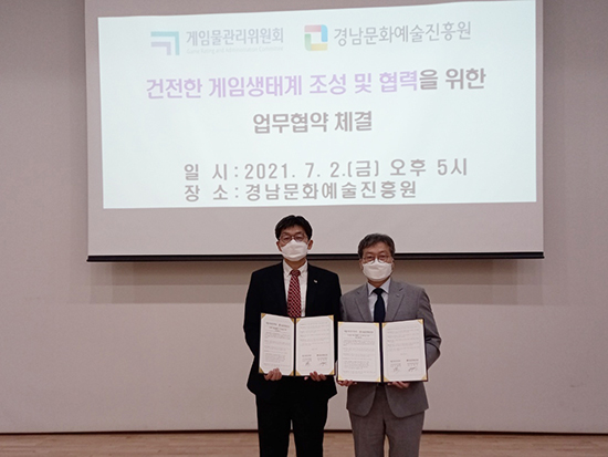 °ÔÀÓ¹°°ü¸®À§¿øÈ¸(°ÔÀÓÀ§)¿Í °æ³²¹®È¿¹¼úÁøÈï¿ø(ÁøÈï¿ø)Àº Áö³ 2ÀÏ(±Ý) °ÇÀüÇÑ °ÔÀÓ»ýŰè Á¶¼º°ú Çù·ÂÀ» À§ÇÑ ¾÷¹«Çù¾àÀ» ü°áÇß´Ù.
