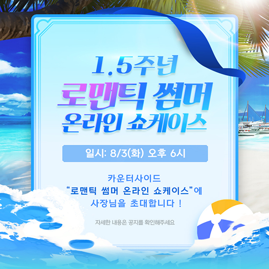 ³Ø½¼Àº ½ºÆ©µð¿Àºñ»çÀ̵尡 °³¹ßÇϰí Àڻ簡 ¼ºñ½ºÇÏ´Â ¾î¹Ý ÆÇŸÁö RPG ¡®Ä«¿îÅÍ»çÀ̵å(CounterSide)¡¯ÀÇ ¼ºñ½º 1.5ÁÖ³âÀ» ¸Â¾Æ ¡®·Î¸Çƽ ½æ¸Ó¡¯ ¿Â¶óÀÎ ¼îÄÉÀ̽º¸¦ 8¿ù 3ÀÏ °³ÃÖÇÑ´Ù.
