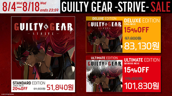 20³â ¸¸¿¡ ¿ÏÀü Çѱ¹¾î À½¼º ´õºùÀ¸·Î µ¹¾Æ¿Â, 2.5D ´ëÀü°ÝÅõ °ÔÀÓ ¡¸±æÆ¼±â¾î -½ºÆ®¶óÀ̺ê-¡¹¸¦ ±â°£ÇÑÁ¤À¸·Î ÃÖ´ë 20% ÇÒÀΰ¡·Î ±¸¸ÅÇÒ ¼ö ÀÖ´Â ¡®#GGST ½ºÆä¼È ¼¼ÀÏ¡¯ÀÌ ¿À´Ã 8¿ù 4ÀÏ (¼ö)ºÎÅÍ °³ÃֵȴÙ. À̹ø ¼¼ÀÏÀº PlayStation¢ç5 ¹× PlayStation¢ç4ÀÇ ´Ù¿î·Îµå ½ºÅä¾î(PlayStation¢âStore)¿¡¼ ÁøÇàµÇ¸ç, ±¸Ã¼ÀûÀÎ ¼¼ÀÏ ÀÏÁ¤Àº ¾Æ·¡¿Í °°´Ù.
