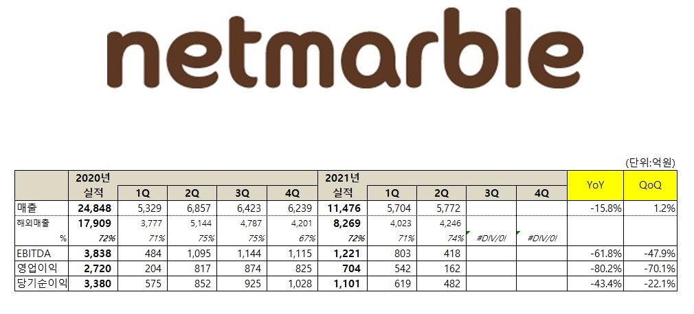 Á¦   ¸ñ : [³Ý¸¶ºí] 2021³â 2Q ½ÇÀû ¹ßÇ¥, ¸ÅÃâ 5,772¾ï ¿ø¿¡ ÀÌÀÍ 162¾ï ¿ø