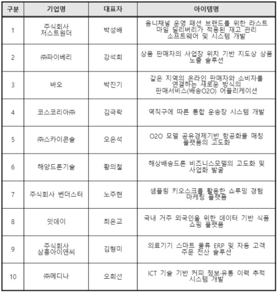 ¡¸2021 À¯¸Á±â¾÷ À°¼º ¹× ½Å¼­ºñ½º ¹ß±¼ Áö¿ø»ç¾÷¡¹¿¡ ¼±Á¤µÈ ±â¾÷ 10°³»ç´Â ¡â(ÁÖ)¸Þµð³ª ¡â¹Ù¿À ¡â(ÁÖ)º¥´õ½ºÅÍ ¡â(ÁÖ)»ïÈï¾ÆÀ̾ؾ¾ ¡â(ÁÖ)½ºÄ«ÀÌÄÜ¼Ö ¡âÀÕµ¥ÀÌ ¡â(ÁÖ)Àú½ºÆ®¿ø´õ ¡âÄÚ½ºÄÚ¸®¾Æ(ÁÖ) ¡â(ÁÖ)ÆÄÀ̺£¸® ¡â(ÁÖ)ÇØ¾çµå·Ð±â¼ú µî ºÎ»ê ¼ÒÀçÀÇ ¹°·ù Àü¹®±â¾÷, ½ºÅ¸Æ®¾÷, °ü·Ã IT¡¤SW ºÐ¾ß ÃÑ 10°³ ±â¾÷ÀÌ´Ù.