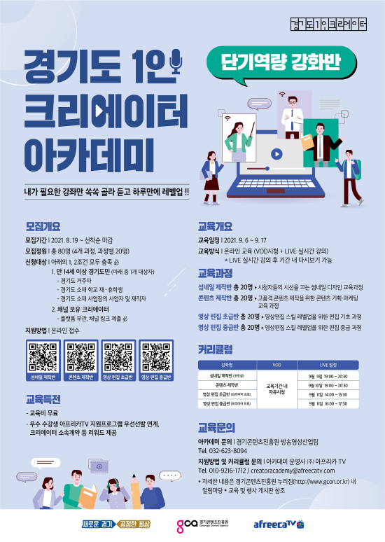 °æ±âµµ¿Í °æ±âÄÜÅÙÃ÷ÁøÈï¿øÀº 8¿ù 19ÀϺÎÅÍ ¡®°æ±âµµ 1ÀÎ Å©¸®¿¡ÀÌÅÍ ¾ÆÄ«µ¥¹Ì¡¯ ´Ü±â¿ª·® °­È­¹Ý ±³À°»ý 80¸íÀ» ¼±Âø¼ø ¸ðÁýÇÑ´Ù. 1ÀÎ Å©¸®¿¡ÀÌÅÍ´Â ÀÚ½ÅÀÌ Ã¢ÀÛÇÑ »çÁø, ¿µ»ó µî ÀÎÅͳÝÀ» ÅëÇØ ´ëÁß¿¡°Ô Á¦°øÇÏ´Â °³ÀΠâÀÛÀÚ¸¦ ¸»ÇÑ´Ù.