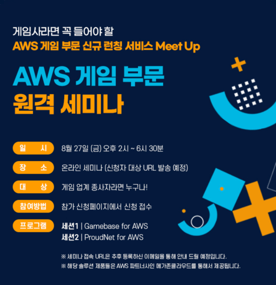 ¾ç»ç°¡ °øµ¿À¸·Î ÁøÇàÇÏ´Â À̹ø Çà»ç´Â ¿Â¶óÀÎ ¼¼¹Ì³ª·Î ¿À´Â 8¿ù 27ÀÏ ÁøÇàµÈ´Ù. À̹ø ¼¼¹Ì³ª´Â ¾ç»ç°¡ ¾Æ¸¶Á¸À¥¼ºñ½º(Amazon Web Services, ÀÌÇÏ AWS)ÀÇ AWS ¸¶ÄÏÇ÷¹À̽º ÀÔÁ¡À» ±â³äÇØ °ÔÀÓ»çµé¿¡°Ô ¼ºñ½º¸¦ ¼Ò°³Çϰí, º¸´Ù ÀÚ¼¼ÇÑ È°¿ë¹ýÀ» Àü´ÞÇϰíÀÚ ¸¶·ÃµÆ´Ù.
