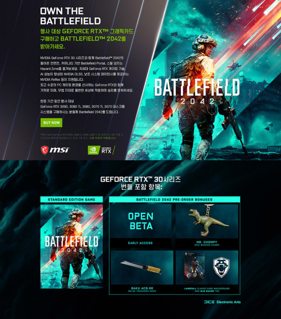 [MSI] RTX30 ½Ã¸®Áî žÀç PC ±¸¸Å½Ã '¹èƲÇʵå 2042' ÄÚµå ÁõÁ¤ |