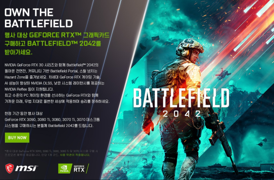 [MSI] ÁöÆ÷½º RTX 3070 ÀÌ»ó žÀç µ¥½ºÅ©Å¾ ±¸¸Å½Ã '¹èƲÇʵå 2042' ÁõÁ¤ |