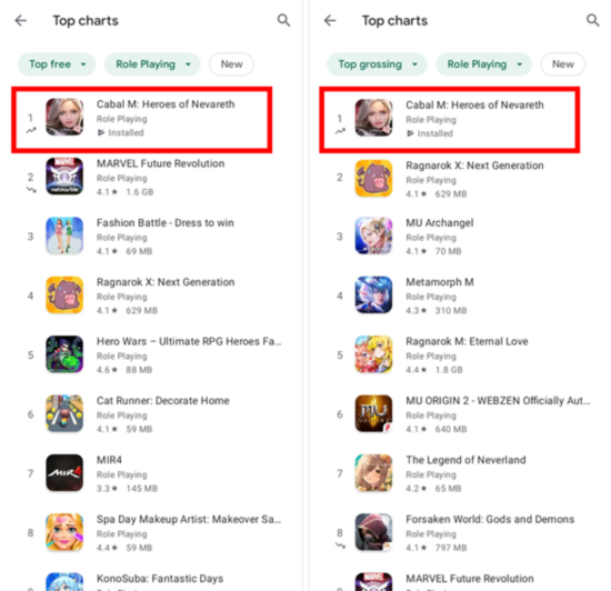 8¿ù 26ÀϺÎÅÍ Çʸ®ÇÉ OBT¼­ºñ½º¸¦ ½ÃÀÛÇÑ Ä«¹ß ¸ð¹ÙÀÏÀº ÇÏ·ç ¸¸¿¡ ¾ÖÇà ¾Û½ºÅä¾î ·ÑÇ÷¹À× °ÔÀÓ ºÎ¹® Àαâ 2À§, ¸ÅÃâ 3À§¸¦ ±â·ÏÇß´Ù. ±¸±Û Ç÷¹ÀÌ ½ºÅä¾î¿¡¼­µµ ºü¸£°Ô ¼øÀ§°¡ »ó½ÂÇÏ¿© Áö³­ 31ÀϺÎÅÍ ¸ÅÃâ ¼øÀ§ 1À§¸¦ Â÷ÁöÇϰí ÀÖ´Ù.
