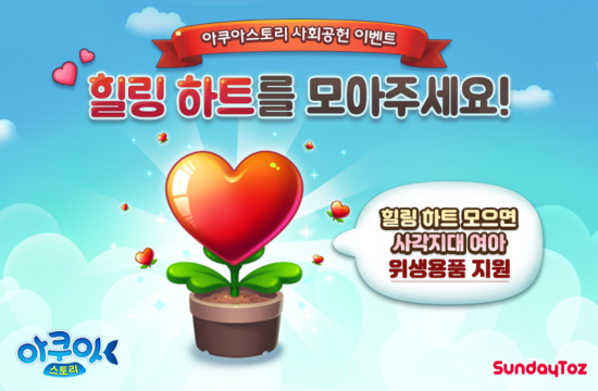 '¾ÆÄí¾Æ½ºÅ丮'¿¡¼ °ÔÀÓ ÀÌ¿ëÀÚµé°ú ÇÔ²² Àü°³ÇÒ »çȸ°øÇå À̺¥Æ®ÀÇ ¸ñÇ¥´Â 9¿ù 14ÀϺÎÅÍ ÀÏÁÖÀÏ µ¿¾È 'Èú¸µÇÏÆ®' 400¸¸ °³¸¦ Àû¸³ÇÏ´Â ³»¿ëÀÌ´Ù. ÀÌ¿ëÀÚ°¡ ¹°°í±â ¾ËÀ» ºÎȽÃų ¶§¸¶´Ù 'Èú¸µÇÏÆ®'°¡ Àû¸³µÈ´Ù. ¼±µ¥ÀÌÅäÁî´Â ¸ñǥġ ´Þ¼º ÈÄ ¸ðµç ÀÌ¿ëÀÚ¿¡°Ô Èñ±Í ¹°°í±â¸¦ ¾òÀ» ¼ö ÀÖ´Â µµÆ®¾Ë µîÀÇ ¾ÆÀÌÅÛÀ» ¼±¹°ÇÒ ¿¹Á¤ÀÌ´Ù.