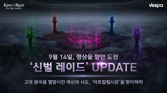 º£½ºÆÄ´Â ¸ð¹ÙÀÏ RPG ¡®Å·½º·¹À̵塯°¡ ÃÖ»óÀ§ ´Ü°èÀÇ ·¹À̵å ÄÜÅÙÃ÷ ¡®½Å¹ú ·¹À̵塯¸¦ ¾÷µ¥ÀÌÆ®Çß°í 9¿ù 14ÀÏ ¹àÇû´Ù. À̹ø ¾÷µ¥ÀÌÆ®¸¦ ÅëÇØ °ø°³µÈ ¡®½Å¹ú ·¹À̵塯´Â ¡®Å·½º·¹À̵塯ÀÇ ÃÖ»óÀ§ ´øÀüÀ¸·Î, ¸ðµç µå·¡°ïÀÇ ¾î¸Ó´ÏÀÌÀÚ ¿©½ÅÀÇ »çµµ Áß Ã¹ ¹øÂ° »çµµÀÎ ¡®¾ÆÆ÷Ä®¸³½Ã¿Â¡¯ÀÌ ÃÖÁ¾ º¸½º·Î µîÀåÇÑ´Ù.